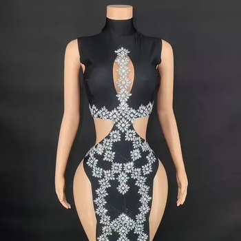 Mini vestido de noche negro para mujer, mangas largas, cristal con lentejuelas decorado para fiestas de cumpleaños, discotecas de graduación para vestidos de cena